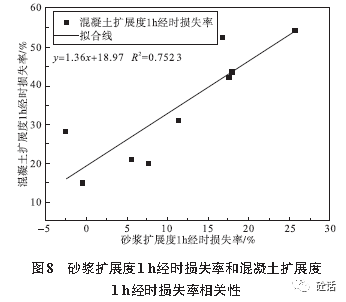 2.3.2砂浆扩展度经时损失率与混凝土扩展度经时损失率相关性